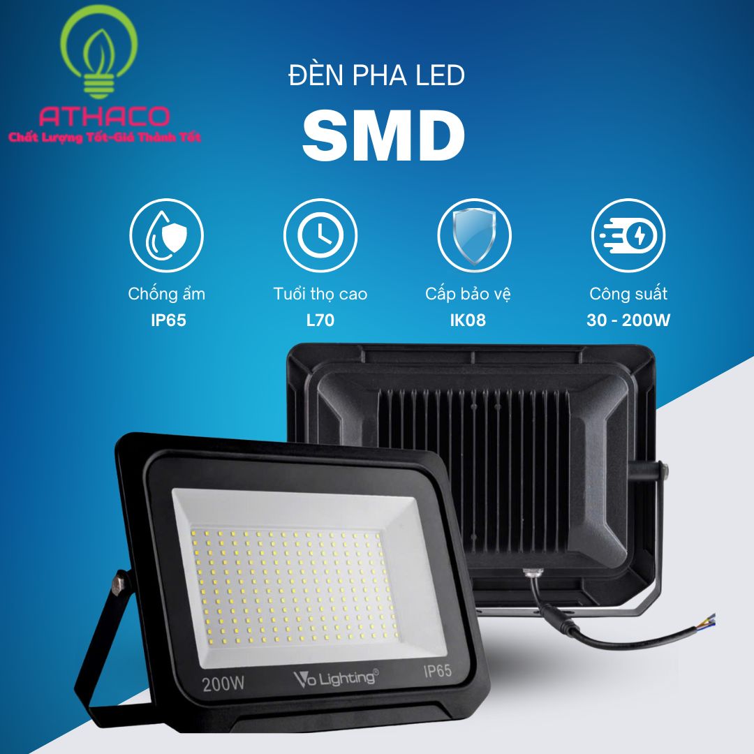 Đèn pha led SMD (Surface Mounted Device) là sản phẩm đèn chiếu sáng có hiệu suất cao và tiết kiệm điện khi sử dụng. Với ưu điểm về hiệu suất chiếu sáng, độ bền, chống nước, chống ẩm,… đèn pha led phù hợp cho nhiều không gian ngoại thất cũng như nội thất với các ứng dụng đa dạng.