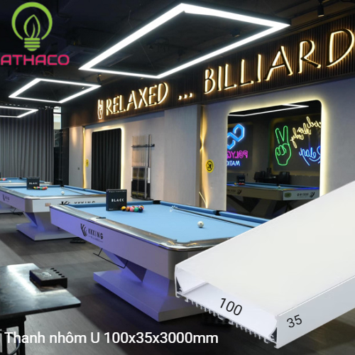 Lắp đặt nổi, thả trần: Sử dụng thanh nhôm U 10035 để chiếu sáng các không gian như phòng Gym, câu lạc bộ Bida, Quán ăn, nhà hàng… giúp không gian trở nên sáng sủa và thoáng đãng hơn.